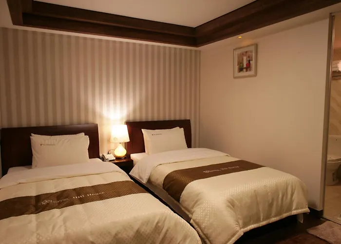 Some of the 100 air-conditioned rooms at Hotel Parksaone are furnished with a sofa, and appointed with an electric kettle. They come with a bath together with amenities like hairdryers and towels.