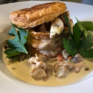 Le restaurant Le Rest du Lion à la carte dans l'hôtel propose des plats pour un dîner.